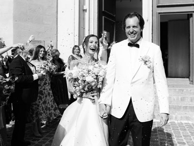 Le dîner gastronomique, magistralement élaboré par le renommé Roland Paix, fut un festin pour les sens. Chaque plat était une symphonie harmonieuse de saveurs, un témoignage de l'amour du couple pour la cuisine raffinée. La célébration s'est poursuivie sous les étoiles alors que Monika rayonnait dans une robe de mariée épaules dénudées qui complétait parfaitement l'élégance intemporelle du Château. Chacun de ses pas était une vision de grâce et de beauté, laissant tout le monde dans l'admiration.