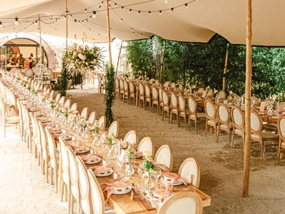 Le mariage de Robin et Sophie au magnifique Château des Barrenques en Provence restera gravé dans les mémoires. Malgré une météo capricieuse, les festivités se sont déroulées sous une tente élégamment décorée, protégeant les invités de la pluie. À l'intérieur, une somptueuse composition florale suspendue embellissait le plafond, apportant élégance et couleur. Les tables étaient décorées avec soin, alliant charme provençal et raffinement. Entourés de leurs proches, les mariés ont célébré leur amour dans une ambiance inoubliable.